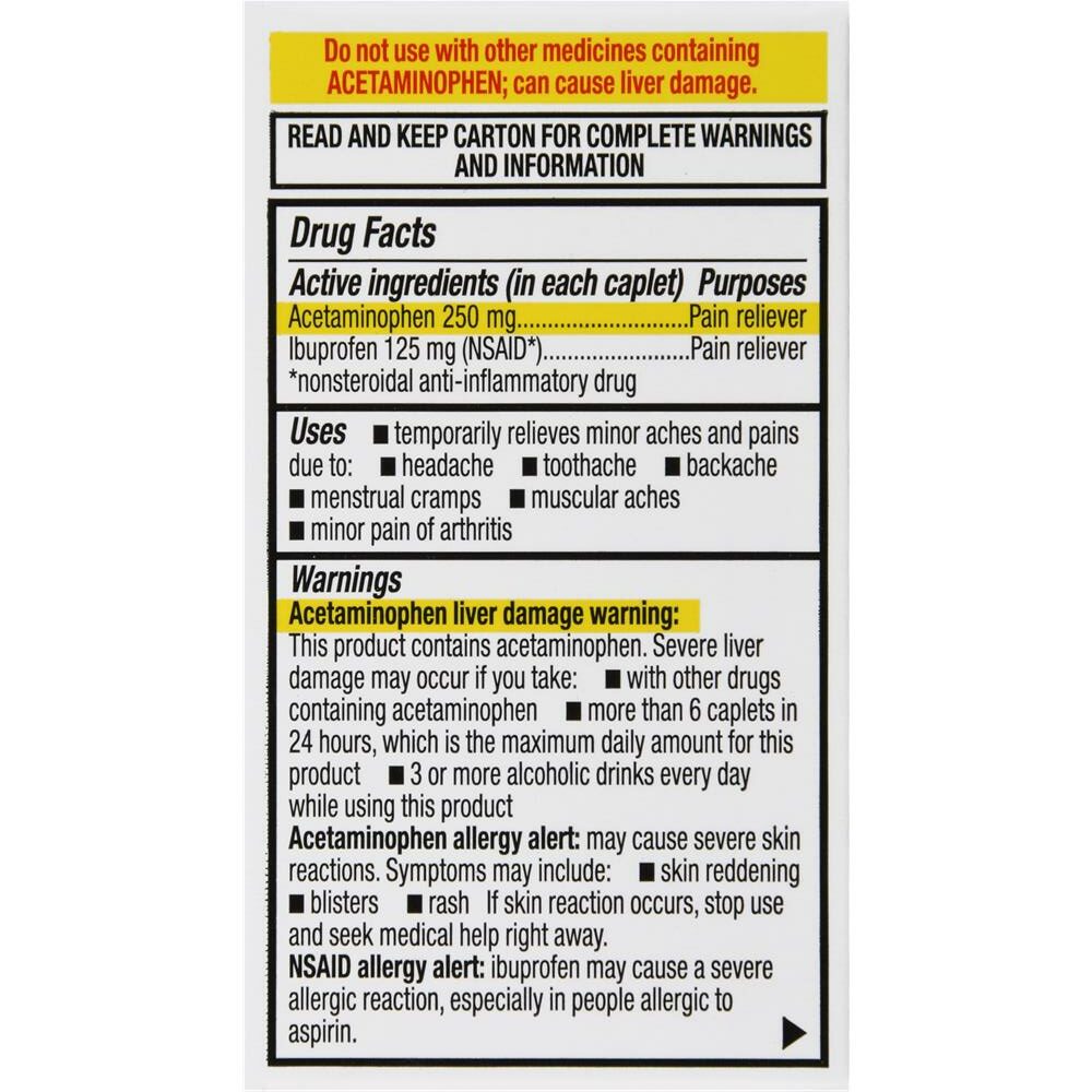 Active Ingredients: Acetaminophen 250 Mg; Ibuprofen 125 Mg (Nsaid*) *Nonsteroidal Anti-Inflammatory Drug