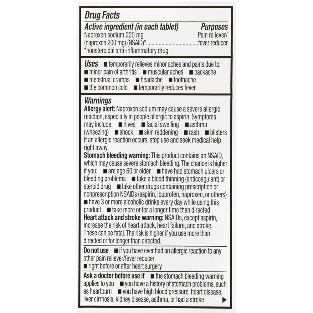 Active Ingredients: Naproxen Sodium 220 Mg (Naproxen 200 Mg) (Nsaid) Nonsteroidal Anti-Inflammatory Drug.