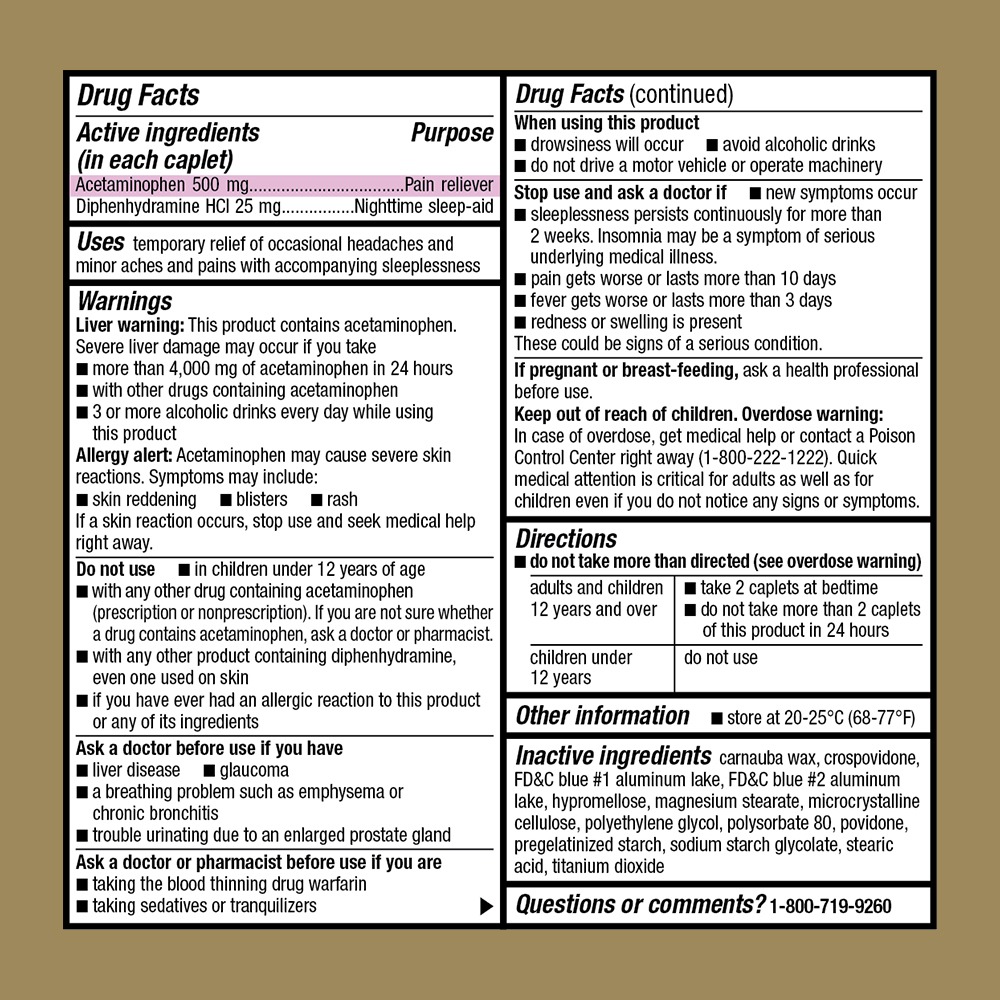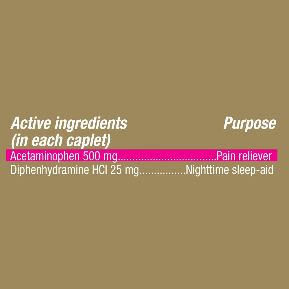 Active Ingredients: Acetaminophen 500 Mg; Diphenhydramine Hcl 25 Mg